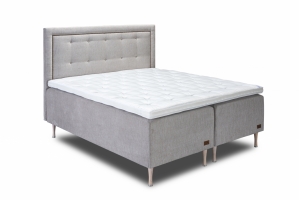 Dansk tillverkad Kontinental säng med 5 följsamma zoner och poly botten 8 cm latex bäddmadrass samt Chesterfield gavel 160 eller 180*200 cm